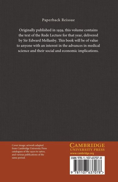 Originally published in 1939, this volume contains the text of the Rede Lecture for that year, delivered by Sir Edward Mellanby. This book will be of value to anyone with an interest in the advances in medical science and their social and economic implications.