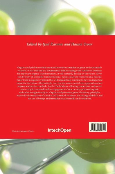 Organocatalysis has recently attracted enormous attention as green and sustainable catalysis. It was realized as a fundamental field providing wide families of catalysts for important organic transformations. It will certainly develop in the future. Given the diversity of accessible transformations, metal-catalyzed reactions have become major tools in organic synthesis that will undoubtedly continue to have an important impact in the future. Alternatively, over the last years, a metal-free approach such as organocatalysis has reached a level of faithfulness, allowing researchers to discover new catalytic systems based on engagement of new or early-prepared organic molecules as organocatalysts. Organocatalysis meets green chemistry principles, especially the reduction of toxicity and chemical accidents, the biodegradability, and the use of benign and friendlier reaction media and conditions.