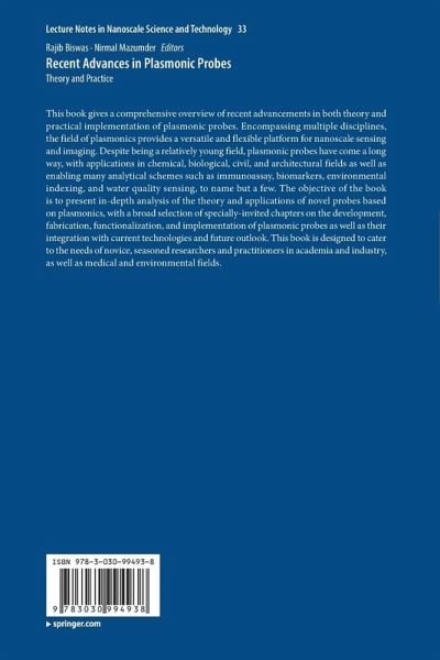 This book gives a comprehensive overview of recent advancements in both theory and practical implementation of plasmonic probes. Encompassing multiple disciplines, the field of plasmonics provides a versatile and flexible platform for nanoscale sensing and imaging. Despite being a relatively young field, plasmonic probes have come a long way, with applications in chemical, biological, civil, and architectural fields as well as enabling many analytical schemes such as immunoassay, biomarkers, environmental indexing, and water quality sensing, to name but a few. The objective of the book is to present in-depth analysis of the theory and applications of novel probes based on plasmonics, with a broad selection of specially-invited chapters on the development, fabrication, functionalization, and implementation of plasmonic probes as well as their integration with current technologies and future outlook. This book is designed to cater to the needs of novice, seasoned researchers and practitioners in academia and industry, as well as medical and environmental fields.
