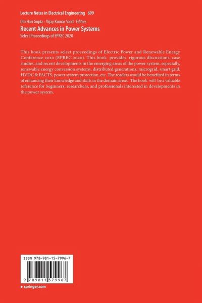 This book presents select proceedings of Electric Power and Renewable Energy Conference 2020 (EPREC 2020). This book provides rigorous discussions, case studies, and recent developments in the emerging areas of the power system, especially, renewable energy conversion systems, distributed generations, microgrid, smart grid, HVDC & FACTS, power system protection, etc. The readers would be benefited in terms of enhancing their knowledge and skills in the domain areas. The book will be a valuable reference for beginners, researchers, and professionals interested in developments in the power system.
