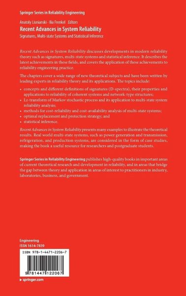 Recent Advances in System Reliability discusses developments in modern reliability theory such as signatures, multi-state systems and statistical inference. It describes the latest achievements in these fields, and covers the application of these achievements to reliability engineering practice.
