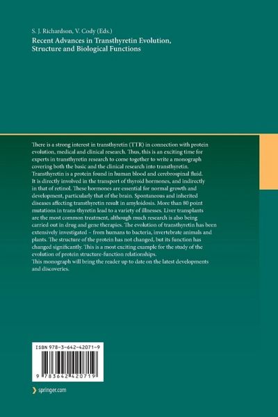 From the reviews: "Transthyretin (TTR) is a relatively abundant thyroid hormone carrier protein found in the blood of vertebrates. ... The authors of the book Recent Advances in Transthyretin Evolution, Structure and Biological Functions have produced a comprehensive reference text that does much to reconcile the evolutionary biology, structure-function relationships and pathophysiology of this remarkable protein. ... In summary, this ... text will prove to be essential reading for both expert and non-expert researchers in the field of TTR biology." (Rob Gasperini, Australian Biochemist, Vol. 41 (1), April, 2010)