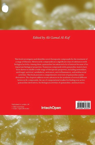 This book investigates and identifies novel therapeutic compounds for the treatment of a range of illnesses. Heterocyclic compounds are a significant class of substances with biological activity. Among them, quinazoline has attracted a lot of interest because of its important biological properties. Numerous compounds with quinazoline moiety have been shown to exhibit a wide range of therapeutic properties, including antioxidant, antifungal, antiviral, antidiabetic, anticancer, anti-inflammatory, and antibacterial activities. This book presents a comprehensive overview of quinazoline and its derivatives. The chapters address recent advances in the synthesis of several different heterocyclic compounds, the use of computational studies for finding new active quinazoline derivatives, the biological activities of quinazoline, and much more.