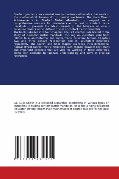 Contact geometry, an essential area in modern mathematics, has roots in the mathematical framework of classical mechanics. The book Recent Advancements in Contact Metric Manifolds is designed as a comprehensive resource for researchers in the field of contact metric manifolds. It presents the latest research on the behavior of various curvature tensors within different types of contact metric manifolds. The book is divided into four chapters. The first chapter is dedicated to the study of K-contact metric manifolds, focusing on curvature conditions related to quasi-conformal and conharmonic curvature tensors. Chapters two and three explore N(k)-contact and (k, mi)-contact manifolds, respectively. The fourth and final chapter examines three-dimensional normal almost contact metric manifolds. Each chapter provides key results and important concepts that are vital for working in these manifolds, along with examples to facilitate understanding and serve as practical references.