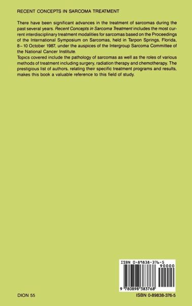 Grading of Soft-Tissue Sarcomas.- Grading of Soft Tissue Sarcomas: Experience of the EORTC Soft Tissue and Bone Sarcoma Group.- Grading of Bone Tumors.- The Pathological Staging of Sarcomas.- The Diagnosis of Soft Tissue Tumors The Göteborg Experience.- The Role of the Pathologist in the Treatment of Osteosarcoma.- Musculoskeletal Tumor Staging - 1987 Update.- Electron Microscopy of Sarcomas.- Immunohistochemistry in Sarcomas.- Cellular Composition of Sarcomas.- Preoperative Evaluation of Extremity Sarcomas.- Open Biopsy of Sarcomas.- Fine Needle Aspiration Cytology in Diagnosis and Management of Bone and Soft Tissue Tumors.- The Role of Frozen Sections in the Diagnosis and Management of Bone and Soft-Tissue Tumors.- Surgical Management of Soft Tissue Sarcomas.- Limited Surgery and External Irradiation in Soft Tissue Sarcomas.- Brachytherapy and Limb-Sparing Resection in the Management of Soft Tissue Sarcoma.- Neoadjuvant Chemotherapy, Radiation, and Limited Surgery for High Grade Soft Tissue Sarcoma of the Extremity.- National Cancer Institute Experience in the Management of High-Grade Extremity Soft Tissue Sarcomas.- Adjuvant Therapy for Soft Tissue Sarcomas.- Pediatric Experience in Rhabdomyosarcoma.- Results of a Randomized Trial for the Treatment of Localized Soft Tissue Tumors (STS) of the Extremities in Adult Patients.- Soft Tissue Sarcomas - Japanese Experience.- European Experience of Adjuvant Chemotherapy for Soft Tissue Sarcoma: Interim Report of a Randomized Trial of CYVADIC Versus Control.- Results of the German Soft-Tissue Sarcoma Study.- A Pilot Study of Adriamycin, Dacarbazine and Ifosfamide in Advanced Adult Soft Tissue Sarcomas.- Chemotherapy of Advanced Soft Tissue Sarcomas.- Chemotherapy in Advanced Soft Tissue Sarcoma - The EORTC Experience.-Prognostic Indicators for Soft Tissue Sarcoma Patients with Pulmonary Metastases.- Pulmonary Resection in Sarcoma Metastases.- Treatment of Gynecologic Sarcomas.- The Current Role of Surgical Therapy in Ewing's Sarcoma.- The Role of Chemotherapy in the Management of Ewing's Sarcoma.- The Role of Radiation Therapy in the Management of Ewing's Sarcoma.- The German Pediatric Oncology (GPO) Cooperative Study on Ewing's Sarcoma.- Natural History of Osteosarcoma-Has it Changed?.- Limb Salvage for Osteosarcoma.- Pelvic Resection in Bone Sarcomas.- En Bloc Surgery for Osteogenic Sarcoma: Analysis and Review of 180 Cases.- The Use of Bone Allograft Transplants in the Management of Bone Tumors.- Surgical Alternatives to Standard Endoprosthetic Replacement and Allograft Reconstruction for Malignant Tumors of the Musculoskeletal System.- Arterial Infusion in the Treatment of Osteosarcoma.- Intra-Arterial Cis-Diamminedichloroplatinum-II in Pediatric Osteosarcoma: Relationship of Effect on Primary Tumor to Survival.- Adjuvant Chemotherapy in the Treatment of Osteosarcoma: Results of the Multi-Institutional Osteosarcoma Study.- Neoadjuvant Chemotherapy for Osteosarcoma. Results of a Prospective Study.- The German Pediatric Oncology (GPO) Cooperative Study on Osteosarcoma.- The Experience of T10 Protocol in the Pediatric Department of The Gustave Roussy Institute.- Adjuvant Treatment with Radiotherapy to the Lungs and/or Chemotherapy for Osteosarcoma of the Limbs.- Osteosarcoma - Japanese Experience.- New Therapeutic Directions in Sarcomas: Biologic and Cytoxic Modalities.