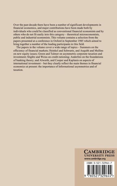 Over the past decade there have been a number of significant developments in financial economics, and major contributions have been made both by individuals who could be classified as conventional financial economists and by others who do not fit easily into this category - theoretical microeconomists, public and industrial economists. This volume contains a selection from the papers presented at a conference in Oxford in September 1985 which aimed to bring together a number of the leading participants in this field. The papers in the volume cover a wide range of topics - Summers on the efficiency of financial markets; Heinkel and Schwartz, and Asquith and Mullins on new equity issues; Green and Talmor on asymmetric corporate taxation and investment; Stiglitz and Weiss on credit rationing; Anderlini on the foundations of banking theory; and Alworth, and Cooper and Kaplanis on aspects of international investment - but they clearly reflect the main themes in financial economics at present: the importance of informational asymmetries and of taxation.