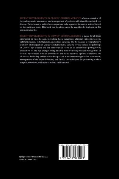 Recent Developments in Graves' Ophthalmopathy offers an overview of the pathogenesis, assessment and management of patients with thyroid-associated eye disease. Each chapter is written by an expert and truly represents the current state of the art on the particular topic. This book can therefore almost be considered a textbook on this enigmatic disorder.