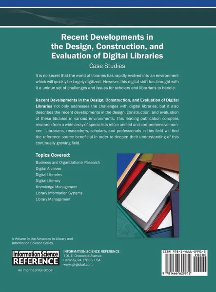 It is no secret that the world of libraries has rapidly evolved into an environment which will soon be largely digitized. However, this digital shift has brought with it a unique set of challenges and issues for scholars and librarians to handle. Recent Developments in the Design, Construction, and Evaluation of Digital Libraries not only addresses the challenges with digital libraries, but it also describes the recent developments in the design, construction, and evaluation of these libraries in various environments. This cutting-edge resource compiles research from a wide array of specialists into a unified and comprehensive manner. Librarians, researchers, scholars, and professionals in this field will find the reference source beneficial in order to deepen their understanding of this continually growing field.