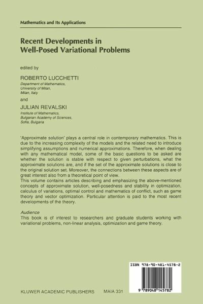 This volume contains several surveys focused on the ideas of approximate solutions, well-posedness and stability of problems in scalar and vector optimization, game theory and calculus of variations. These concepts are of particular interest in many fields of mathematics. The idea of stability goes back at least to J. Hadamard who introduced it in the setting of differential equations; the concept of well-posedness for minimum problems is more recent (the mid-sixties) and originates with A.N. Tykhonov. It turns out that there are connections between the two properties in the sense that a well-posed problem which, at least in principle, is "easy to solve", has a solution set that does not vary too much under perturbation of the data of the problem, i.e. it is "stable". These themes have been studied in depth for minimum problems and now we have a general picture of the related phenomena in this case. But, of course, the same concepts can be studied in other more complicated situations as, e.g. vector optimization, game theory and variational inequalities. Let us mention that in several of these new areas there is not even a unique idea of what should be called approximate solution, and the latter is at the basis of the definition of well posed problem.