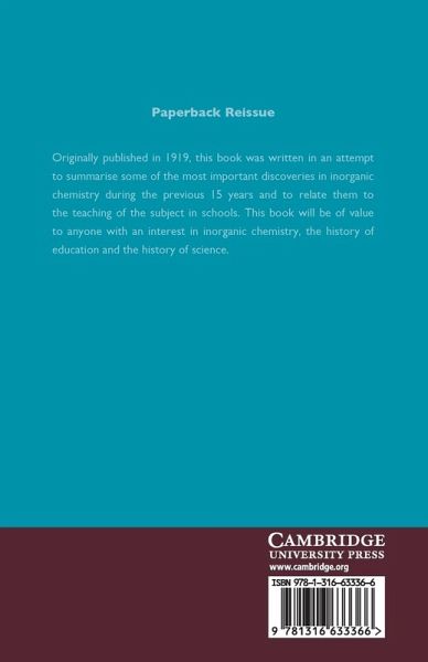 Originally published in 1919, this book was written in an attempt to summarise some of the most important discoveries in inorganic chemistry during the previous fifteen years and to relate them to the teaching of the subject in schools. This book will be of value to anyone with an interest in inorganic chemistry, the history of education and the history of science.