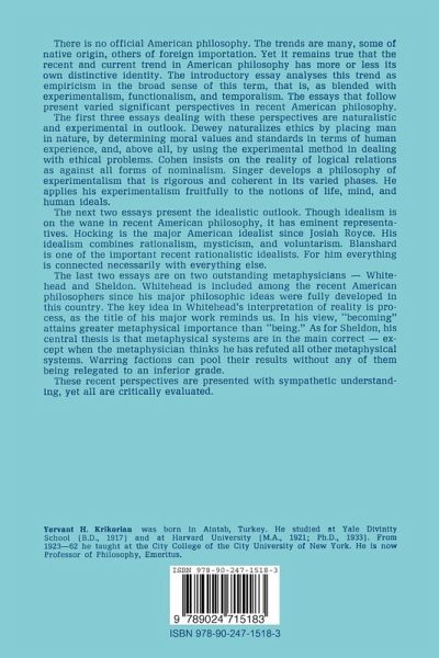 The essays in this book analyze significant perspectives of the recent past in American philosophy; they represent some of the major trends of this period. Alfred North Whitehead is included with the recent American philosophers since his major philosophic ideas were fully developed in this country. There has been no attempt to deal comprehensively with this period. Several philosophers of equal importance who also deserve attention-C. l. Lewis, A. O. Love joy, W. F. Montague, R. B. Perry, F. J. E. Woodbridge, and others have not been discussed. Most of the essays were published at various times in various journals. Though all of the perspectives are presented with sympathetic understanding, they are also critically evaluated. 2 AMERICAN PHILOSOPHY OF THE RECENT PAST But even more than individual philosophers and schools of philos ophy the larger background of contemporary American life has nour ished the empirical spirit. Science as the most pervasive climate of our intellectualand practical activity has enhanced the empirical attitude. The great development, in this country, of business and technological industry has encouraged the pragmatic, empirical outlook. Empiricism, however, is an ambiguous term, and its different meanings have different philosophic consequences. For some it means that only concrete personal experience can be accepted as reality; for others it means the succession of sense-impressions. The more recent usage, the one that has been dominant in American philosophy, identifies empiricism with objectively and socially verifiable pronounce ments, that is, with experimentalism, or confirmation through demon strable evidence.