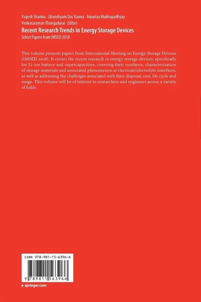 This volume presents papers from International Meeting on Energy Storage Devices (IMSED 2018). It covers the recent research in energy storage devices, specifically for Li-ion battery and supercapacitors, covering their synthesis, characterization of storage materials and associated phenomenon at electrode/electrolyte interfaces, as well as addressing the challenges associated with their disposal, cost, life cycle and usage. This volume will be of interest to researchers and engineers across a variety of fields.