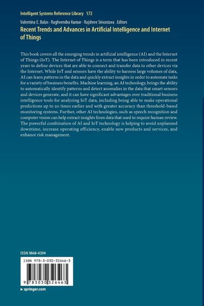 This book covers all the emerging trends in artificial intelligence (AI) and the Internet of Things (IoT). The Internet of Things is a term that has been introduced in recent years to define devices that are able to connect and transfer data to other devices via the Internet. While IoT and sensors have the ability to harness large volumes of data, AI can learn patterns in the data and quickly extract insights in order to automate tasks for a variety of business benefits. Machine learning, an AI technology, brings the ability to automatically identify patterns and detect anomalies in the data that smart sensors and devices generate, and it can have significant advantages over traditional business intelligence tools for analyzing IoT data, including being able to make operational predictions up to 20 times earlier and with greater accuracy than threshold-based monitoring systems. Further, other AI technologies, such as speech recognition and computer vision can help extract insights from data that used to require human review. The powerful combination of AI and IoT technology is helping to avoid unplanned downtime, increase operating efficiency, enable new products and services, and enhance risk management.