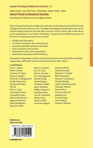 This book presents the proceedings of a conference on dynamical systems held in honor of Jürgen Scheurle in January 2012. Through both original research papers and survey articles leading experts in the field offer overviews of the current state of the theory and its applications to mechanics and physics. In particular, the following aspects of the theory of dynamical systems are covered:- Stability and bifurcation- Geometric mechanics and control theory- Invariant manifolds, attractors and chaos- Fluid mechanics and elasticity- Perturbations and multiscale problems- Hamiltonian dynamics and KAM theoryResearchers and graduate students in dynamical systems and related fields, including engineering, will benefit from the articles presented in this volume.