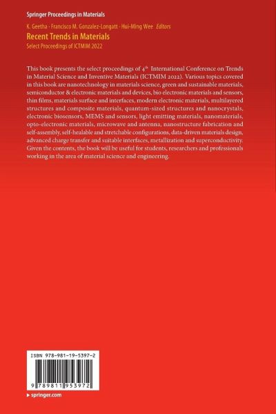 This book presents the select proceedings of 4th International Conference on Trends in Material Science and Inventive Materials (ICTMIM 2022). Various topics covered in this book are nanotechnology in materials science, green and sustainable materials, semiconductor & electronic materials and devices, bio electronic materials and sensors, thin films, materials surface and interfaces, modern electronic materials, multilayered structures and composite materials, quantum-sized structures and nanocrystals, electronic biosensors, MEMS and sensors, light emitting materials, nanomaterials,…mehr