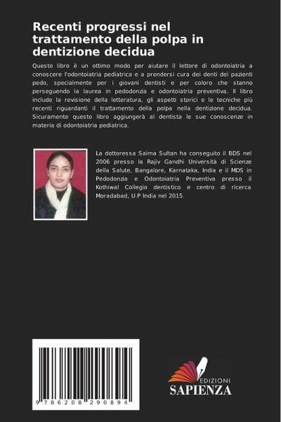 Questo libro è un ottimo modo per aiutare il lettore di odontoiatria a conoscere l'odontoiatria pediatrica e a prendersi cura dei denti dei pazienti pedo, specialmente per i giovani dentisti e per coloro che stanno perseguendo la laurea in pedodonzia e odontoiatria preventiva. Il libro include la revisione della letteratura, gli aspetti storici e le tecniche più recenti riguardanti il trattamento della polpa nella dentizione decidua. Sicuramente questo libro aggiungerà al dentista le sue conoscenze in materia di odontoiatria pediatrica.