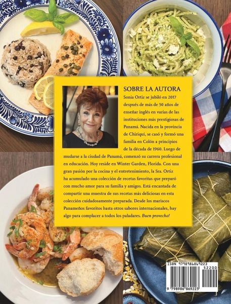 NOTA IMPORTANTE: Este no es un libro académico o enciclopedia compléta de la cocina Panameña. Este es un libro de recetas escrito por la Sra. Sonia Ortiz que ha acumulado una colección de recetas Panameñas favoritas que preparó con mucho amor para su familia y amigos. Está encantada de compartir una muestra de sus recetas más deliciosas en esta colección cuidadosamente preparada. Desde los platos Panameños más importantes como tortillas, tamales, y mariscos hasta otros sabores internacionales, hay algo para complacer a todos los paladares. Recetas Panameñas específicas incluyen: Yuca frita, Hojaldres, Patacones (Tostones), Ceviche, Plátanos en tentación, Tortillas, Arroz con Guandú, Ensalada de Feria, Sancocho, Arroz con pollo tradicional, Empanadas de carne, Souse, Tamales, Bocado de la Reina, Chichita, Arroz con coco y pasitas, Cocadas, Flan de casa, y muchas recetas internacionales famosas en Panamá. Este libro de recetas incluye una introducción con fotos de Panamá y una sección bien detallada que describe muchos de los ingredientes más populares de la cocina Panameña. Inspirese con una sección de recetas Panameñas favoritas como las frituras, el ceviche, tamales, arroz con pollo, y tortillas. Otras secciones en este libro incluye Bebidas, Salsas y Entreméses, Aperitivos y Ensaladas, Platos Adicionales, Platos Principales, y Postres. El libro a ganado medalla de oro en la competencia President's Book Awards de Florida Authors and Publishers Association bajo la categoría de libros de recetas, presentado en Agosto 2023.