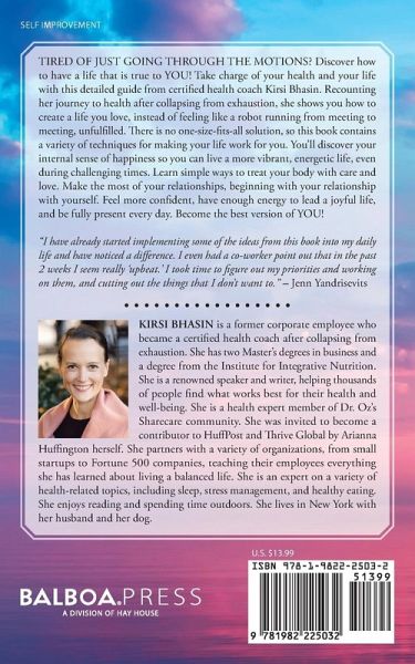 Recharge: Find Joy, Boost Your Energy, Take Charge of Your Health is new food for thought as an antidote to rigid health and wellness protocols and formulas. There is a no size fits all approach when it comes to your health and wellbeing. Every chapter offers options not prescriptions on how to recharge your body, mind and soul. Do you feel like a robot going through the motions at work and you've forgotten what it's like to feel happy about what you're doing? Do you find it hard for your mind to quiet down? You're always thinking, analyzing, reflecting on work and all the other things on your to-do list no matter where you are? Is it hard to keep still or just be? You feel restless and the need to always be doing something like striving for the next big thing in your career and having it all If this at all sounds like you Recharge will teach you practical tips and inspire you to take action so you can become more focused, energized and calm. Learn how to: Be happy even when times are tough Stop feeling like a robot going through the motions Find out what works for your body and health Have healthy relationships Make healthy habits stick And more "I have already started implementing some of the ideas from this book into my daily life and have noticed a difference. I even had a co-worker point out that in the past 2 weeks I seem really 'upbeat.' I took time to figure out my priorities and working on them, and cutting out the things that I don't want to." Jenn Yandrisevits