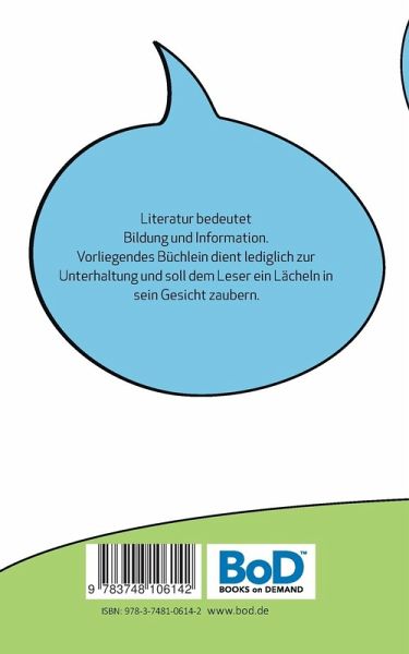 Literatur bedeutet Bildung und Information. Vorliegendes Büchlein dient lediglich zur Unterhaltung und soll dem Leser ein Lächeln in sein Gesicht zaubern.