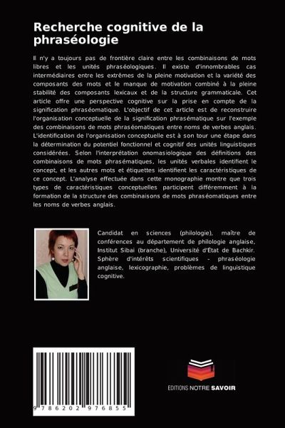 Il n'y a toujours pas de frontière claire entre les combinaisons de mots libres et les unités phraséologiques. Il existe d'innombrables cas intermédiaires entre les extrêmes de la pleine motivation et la variété des composants des mots et le manque de motivation combiné à la pleine stabilité des composants lexicaux et de la structure grammaticale. Cet article offre une perspective cognitive sur la prise en compte de la signification phraséomatique. L'objectif de cet article est de reconstruire l'organisation conceptuelle de la signification phrasématique sur l'exemple des combinaisons de mots phraséomatiques entre noms de verbes anglais. L'identification de l'organisation conceptuelle est à son tour une étape dans la détermination du potentiel fonctionnel et cognitif des unités linguistiques considérées. Selon l'interprétation onomasiologique des définitions des combinaisons de mots phrasématiques, les unités verbales identifient le concept, et les autres mots et étiquettes identifient les caractéristiques de ce concept. L'analyse effectuée dans cette monographie montre que trois types de caractéristiques conceptuelles participent différemment à la formation de la structure des combinaisons de mots phraséomatiques entre les noms de verbes anglais.