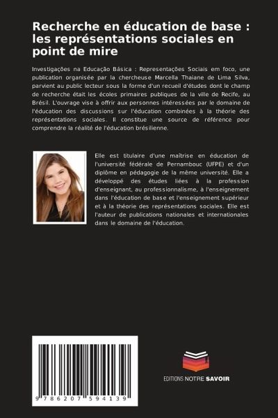 Investigações na Educação Básica : Representações Sociais em foco, une publication organisée par la chercheuse Marcella Thaiane de Lima Silva, parvient au public lecteur sous la forme d'un recueil d'études dont le champ de recherche était les écoles primaires publiques de la ville de Recife, au Brésil. L'ouvrage vise à offrir aux personnes intéressées par le domaine de l'éducation des discussions sur l'éducation combinées à la théorie des représentations sociales. Il constitue une source de référence pour comprendre la réalité de l'éducation brésilienne.