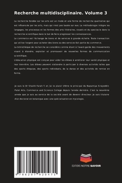 La recherche fondée sur les arts est un mode et une forme de recherche qualitative qui est influencée par les arts, mais qui n'est pas basée sur eux. La méthodologie intègre les langages, les processus et les formes des arts littéraires, visuels et du spectacle dans la recherche scientifique dans le but de faire progresser les connaissances.Le commerce est l'échange de biens et de services à grande échelle. Toute transaction qui utilise l'argent pour acheter des biens ou des services fait partie du commerce.La bibliothèque de recherche se considère comme étant à l'avant-garde des mouvements visant à étendre, exploiter et promouvoir de nouvelles formes de communication scientifique.L'éducation physique est conçue pour aider les élèves à améliorer leur santé physique et leur bien-être. Les élèves peuvent s'attendre à participer à diverses activités telles que des sports d'équipe, des sports individuels, de la danse et des activités de remise en forme.