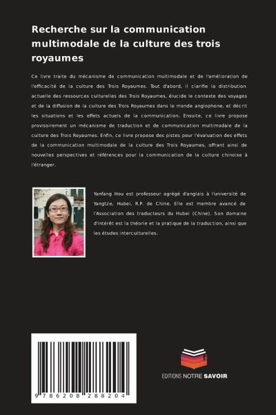 Ce livre traite du mécanisme de communication multimodale et de l'amélioration de l'efficacité de la culture des Trois Royaumes. Tout d'abord, il clarifie la distribution actuelle des ressources culturelles des Trois Royaumes, élucide le contexte des voyages et de la diffusion de la culture des Trois Royaumes dans le monde anglophone, et décrit les situations et les effets actuels de la communication. Ensuite, ce livre propose provisoirement un mécanisme de traduction et de communication multimodale de la culture des Trois Royaumes. Enfin, ce livre propose des pistes pour l'évaluation des effets de la communication multimodale de la culture des Trois Royaumes, offrant ainsi de nouvelles perspectives et références pour la communication de la culture chinoise à l'étranger.