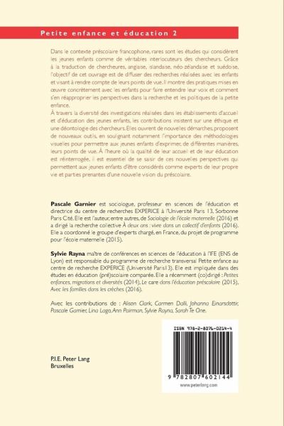 À travers la diversité des investigations réalisées dans les établissements d'accueil et d'éducation des jeunes enfants, les contributions insistent sur une éthique et une déontologie des chercheurs. Elles ouvrent de nouvelles démarches, proposent de nouveaux outils, en soulignant notamment l'importance des méthodologies visuelles pour permettre aux jeunes enfants d'exprimer, de différentes manières, leurs points de vue. À l'heure où la qualité de leur accueil et de leur éducation est réinterrogée, il est essentiel de se saisir de ces nouvelles perspectives qui permettent aux jeunes enfants d'être considérés comme experts de leur propre vie et parties prenantes d'une nouvelle vision du préscolaire.