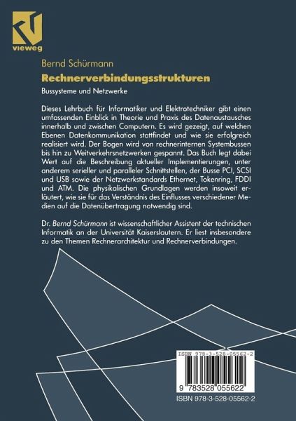 Dieses Lehrbuch für Informatiker und Elektrotechniker gibt einen umfassenden Einblick in Theorie und Praxis des Datenaustausches innerhalb und zwischen Computern. Es wird gezeigt, auf welchen Ebenen Datenkommunikation stattfindet und wie sie erfolgreich realisiert wird. Der Bogen wird von rechnerinternen Systembussen bis hin zu Weitverkehrsnetzwerken gespannt. Das Buch legt dabei Wert auf die Beschreibung aktueller Implementierungen, unter anderem serieller und paralleler Schnittstellen, der Busse PCI, SCSI und USB sowie der Netzwerkstandards Ethernet, Tokenring, FDDI und ATM. Die physikalischen Grundlagen werden insoweit erläutert, wie sie für das Verständnis des Einflusses verschiedener Medien auf die Datenübertragung notwendig sind.