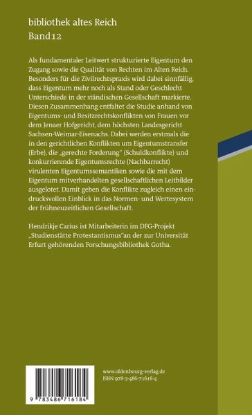 Als fundamentaler Leitwert strukturierte Eigentum den Zugang sowie die Qualität von Rechten im Alten Reich. Besonders für die Zivilrechtspraxis wird dabei sinnfällig, dass Eigentum mehr noch als Stand oder Geschlecht Unterschiede in der ständischen Gesellschaft markierte. Diesen Zusammenhang entfaltet die Studie anhand von Eigentums- und Besitzrechtskonflikten von Frauen vor dem Jenaer Hofgericht, dem höchsten Landesgericht Sachsen-Weimar-Eisenachs. Dabei werden erstmals die in den gerichtlichen Konflikten um Eigentumstransfer (Erbe), die "gerechte Forderung" (Schuldkonflikte) und konkurrierende Eigentumsrechte (Nachbarrecht) virulenten Eigentumssemantiken sowie die mit dem Eigentum mitverhandelten gesellschaftlichen Leitbilder ausgelotet. Damit geben die Konflikte zugleich einen eindrucksvollen Einblick in das Normen- und Wertesystem der frühneuzeitlichen Gesellschaft.