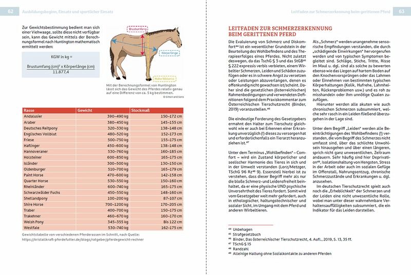 Die Autoren beleuchten in ihrem neuesten Buch alle Facetten des Freizeitreitens und des Pferdesports unter Berücksichtigung sämtlicher tierschutzrechtlicher Rahmenbedingungen in Deutschland und Österreich, um darzustellen, wie man diesen wunderbaren Sport mit dem Lebewesen Pferd betreiben kann, sodass beide Beteiligten Freude an ihrer Zusammenarbeit haben. Eine artgerechte Haltung gehört hier ebenso dazu wie eine vorsichtige und liebevolle Ausbildung mit einer Ausrüstung, die speziell an das einzelne Pferd angepasst und ihm angenehm ist.Auch auf viele weitere rechtlich relevante Punkte, wie Verhalten im Straßenverkehr, Registrierung im Vis (Verbrauchergesundheitsinformationssystem), Haftung im Schadensfall und Kauf bzw. Verkauf von Pferden inkl. Wertminderung, wird näher eingegangen.