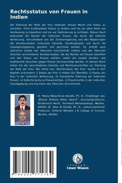 Die Stärkung der Rolle der Frau bedeutet, Frauen Macht und Status zu verleihen, ihren traditionellen Status zu ändern und sie vor allen Arten von Ausbeutung zu bewahren und sie vor Optimierung zu schützen. Dieses Buch beleuchtet die Rechte der indischen Frauen, die durch die indische Verfassung, verschiedene von der Zentralregierung und den Regierungen der Bundesstaaten erlassene Gesetze, Sondergesetze und durch die Sozialgesetzgebung gestärkt und geschützt werden. Es enthält auch zahlreiche Urteile des Obersten Gerichtshofs Indiens und der Obersten Gerichte verschiedener Bundesstaaten, die die Rechte von Frauen betreffen und den Status von Frauen stärken, wobei die soziale Struktur und traditionelle Ansichten gegen Frauen berücksichtigt werden. In diesem Buch finden Sie die verschiedenen Gesetze und Rechtsvorschriften zur Stärkung der Rolle der Frau. Der Inhalt von "Rechtsstatus der Frau" wurde in fünf Kapiteln präsentiert: i) Status der Frau in Indien: Ein Überblick, ii) Statusder Frau in der indischen Verfassung, iii) Gesetzliche Stärkung der indischen Frauen, iv) Indische Justiz zu Frauenrechten, v) Frauenrechte in der indischen Gesetzgebung und Ansichten des Obersten Gerichtshofs.
