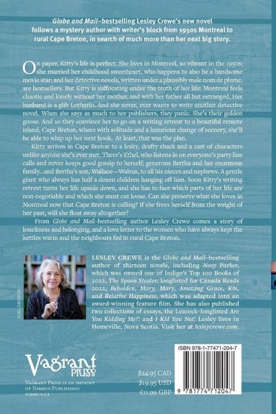 This novel by Lesley Crewe follows a mystery author with writer's block from 1950s Montreal to rural Cape Breton, in search of much more than her next big story.