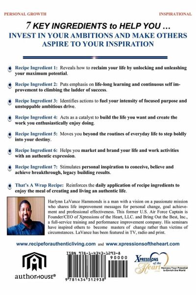 This insightful and empowering book is the first book in series titled "Recipe for Authentic Living." It was written not only to lay the foundation to legacy building, but also; to be the spark that lights the flame and awaken motivated high achievers. It is my hope the contents of this book will serve as a magnet to guide your walk, talk and action with a new beat to your step. The single most important objective of Recipe for Authentic Living is to HELP YOU live boldly each day to manifest your magnificent destiny! 7 "Must-Have" Recipe Ingredients for Legacy Building: * Recipe Ingredient 1: Reveals how to reclaim your life by unlocking and unleashing your maximum potential. * Recipe Ingredient 2: Puts emphasis on life-long learning and continuous self improvement to climbling the ladder of success. * Recipe Ingredient 3: Identifies actions to fuel your intensity of purpose and Unstoppable ambitious drive. * Recipe Ingredient 4: Acts as a catalyst to build the life you want and create the work you enthusiastically enjoy doing. * Recipe Ingredient 5: Moves you beyond the routines of everyday life to step boldly into your destiny. * Recipe Ingredient 6: Helps you market and brand your life and work activities with an authentic expression. * Recipe Ingredient 7: Stimulates personal inspiration to conceive, believe and achieve breakthrough, legacy building results.