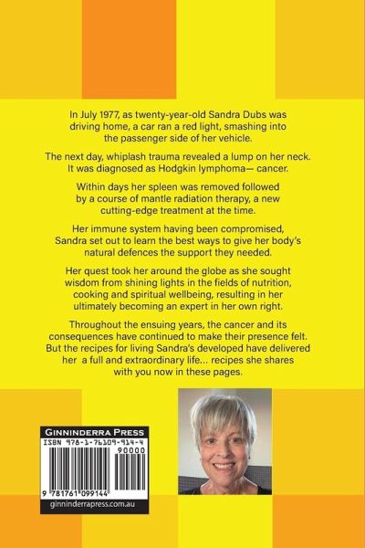 In July 1977, as twenty-year-old Sandra Dubs was driving home, a car ran a red light, smashing into the passenger side of her vehicle. The next day, whiplash trauma revealed a lump on her neck. It was diagnosed as Hodgkin lymphoma - cancer. Within days her spleen was removed followed by a course of mantle radiation therapy, a new cutting-edge treatment at the time. Her immune system having been compromised, Sandra set out to learn the best ways to give her body's natural defences the support they needed. Her quest took her around the globe as she sought wisdom from shining lights in the fields of nutrition, cooking and spiritual wellbeing, resulting in her ultimately becoming an expert in her own right. Throughout the ensuing years, the cancer and its consequences have continued to make their presence felt. But the recipes for living Sandra's developed have delivered her a full and extraordinary life... recipes she shares with you now in these pages.