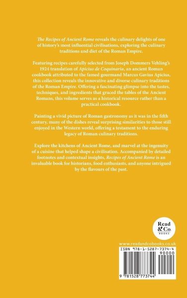 The Recipes of Ancient Rome reveals the culinary delights of one of history's most influential civilisations, exploring the culinary traditions and diet of the Roman Empire. Featuring recipes carefully selected from Joseph Dommers Vehling's 1924 translation of Apicius de Coquinaria, an ancient Roman cookbook attributed to the famed gourmand Marcus Gavius Apicius, this collection reveals the innovative and diverse culinary traditions of the Roman Empire. Offering a fascinating glimpse into the tastes, techniques, and ingredients that graced the tables of the Ancient Romans, this volume serves as a historical resource rather than a practical cookbook. Painting a vivid picture of Roman gastronomy as it was in the fifth century, many of the dishes reveal surprising similarities to those still enjoyed in the Western world, offering a testament to the enduring legacy of Roman culinary traditions. Explore the kitchens of Ancient Rome, and marvel at the ingenuity of a cuisine that helped shape a civilisation. Accompanied by detailed footnotes and contextual insights, Recipes of Ancient Rome is an invaluable book for historians, food enthusiasts, and anyone intrigued by the flavours of the past.