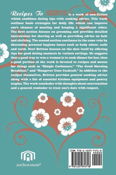 "Recipes to Seduce" is a work of non-fiction which combines dating tips with cooking advice. This work outlines basic strategies for daily life which can improve one's chances of meeting and keeping a significant other. The first section focuses on grooming and provides detailed instructions for shaving as well as providing advice on hair and clothing. The second section continues in the same vein by discussing personal hygiene issues such as body odour, nails and teeth. Next Britton focuses on the date itself by offering tips for good dating manners in various settings. He suggests that a good way to woo a woman is to cook dinner for her, thus a good portion of the work is devoted to recipes and menus for things such as "Simple Carbonara," "The Good Morning Breakfast," and "Hangover Cure Cocktail." In addition to the recipes themselves, Britton provides general cooking advice along with a list of essential kitchen equipment and pantry staples. The work concludes with thoughts about conversation and a general reminder to treat one's date with respect.