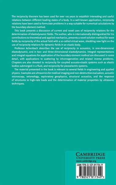 The reciprocity theorem has been used for over 100 years to establish interesting and useful relationships and to formulate problems. Internationally distinguished for his contributions to mechanics, Jan Achenbach presents a novel method of solving wave fields. The material presented here is relevant to applications in engineering and applied physics such as ultrasonics for medical imaging and non-destructive evaluation, acoustic microscopy, seismology, exploratory geophysics, and structural acoustics.