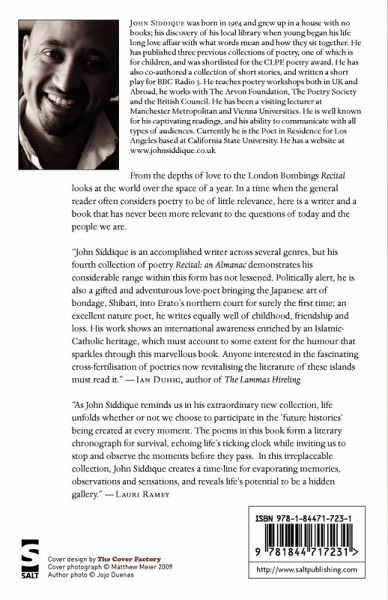 From the depths of longing to the London Bombings "Recital" offers a poet's journey looking at our world over the space of a year. Taking the lunar cycle as its central theme, Siddique's book surveys our doubts, desires and dislocations and unites us in a celebration of love.