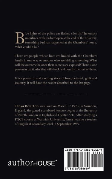 Blue lights of the police car flashed silently. The empty ambulance with its door open at the end of the driveway. Something bad has happened at the Chambers' home. What could it be? There are people whose lives are linked with the Chambers family in one way or another who are hiding something. What will the outcome be once their secrets are exposed? There is one person in particular that will shock and horrify the rest of them. It is a powerful and exciting story of love, betrayal, guilt and jealousy. It will have the reader absorbed to the last page.