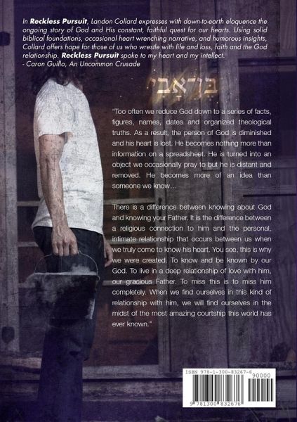 In Reckless Pursuit, Landon Collard expresses with down-to-earth eloquence the ongoing story of God and His constant, faithful quest for our hearts. Using solid biblical foundations, occasional heart wrenching narrative, and humorous insights, Collard offers hope for those of us who wrestle with life and loss, faith and the God relationship. Reckless Pursuit spoke to my heart and my intellect. - Caron Guillo, An Uncommon Crusade