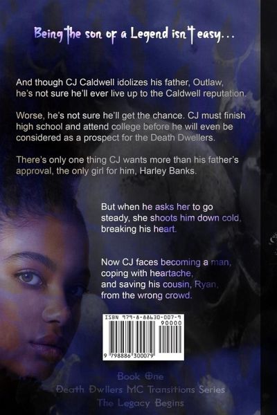 Being the son of a legend isn't easy... And though CJ Caldwell idolizes his father, Outlaw, he's not sure he'll ever live up to the Caldwell reputation. Worse, he's not sure he'll get the chance. CJ must finish high school and attend college before he will even be considered as a prospect for the Death Dwellers. There's only one thing CJ wants more than his father's approval, the only girl for him, Harley Banks. But when he asks her to go steady, she shoots him down cold, breaking his heart. Now CJ faces becoming a man, coping with heartache, and saving his cousin, Ryan, from the wrong crowd.