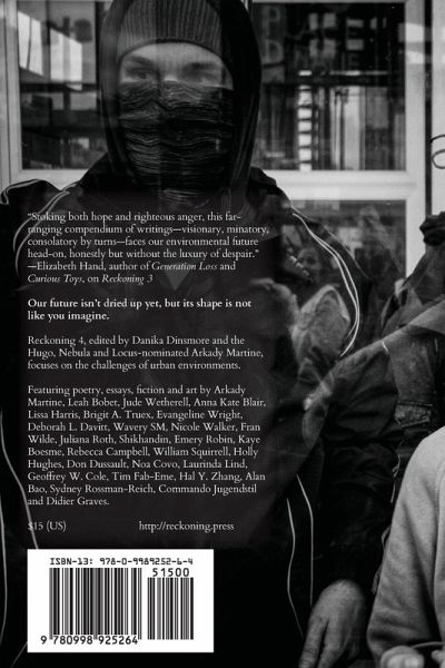 Our future isn't dried up yet, but its shape is not like you imagine. Reckoning is a nonprofit, annual journal of creative writing on environmental justice. Reckoning 4, guest-edited by Danika Dinsmore and (the Hugo, Nebula and Locus Award nominated!) Arkady Martine, focuses on the challenges of urban environments. "A sobering burst of dynamic stories, poems, and essays that struggle with our overheating world. Arkady Martine and Danika Dinsmore have assembled a powerful collection for our unique time." -Tobias Buckell, co-author (with Paolo Bacigalupi) of The Tangled Lands Featuring poetry, essays, fiction and art by Arkady Martine, Leah Bobet, Jude Wetherell, Anna Kate Blair, Lissa Harris, Brigit A. Truex, E. M. Wright, Deborah L. Davitt, Wavery SM, Nicole Walker, Fran Wilde, Juliana Roth, Shikhandin, Emery Robin, Kaye Boesme, Rebecca Campbell, William Squirrell, Holly Hughes, Don Dussault, Noa Covo, Laurinda Lind, Geoffrey W. Cole, Tim Fab-Eme, Hal Y. Zhang, Alan Bao, Sydney Rossman-Reich, Commando Jugendstil and Didier Graves.