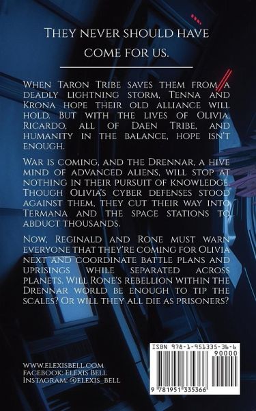When Taron Tribe saves them from a deadly lightning storm, Tenna and Krona hope their old alliance will hold. But with the lives of Olivia, Ricardo, all of Daen Tribe, and humanity in the balance, hope isn't enough. War is coming, and the Drennar, a hive mind of advanced aliens, will stop at nothing in their pursuit of knowledge. Though Olivia's cyber defenses stood against them, they cut their way into Termana and the space stations to abduct thousands. Now, Reginald and Rone must warn everyone that they're coming for Olivia next and coordinate battle plans and uprisings while separated across planets. Will Rone's rebellion within the Drennar world be enough to tip the scales? Or will they all die as prisoners?
