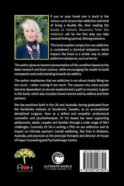 If you or your loved one is stuck in the vicious cycle of porn/sex addiction and tired of living a double life, then reading this Guide to Holistic Recovery from Sex Addiction will be the first step you take towards finding optimal, lifelong solutions. This book explains simply how sex addiction is considered a chemical imbalance which impacts the brain in a similar way to other addictive substances, such as heroin. The author gives an honest representation of this condition based on the latest research and brain science, while encouraging the reader to build compassion and understanding towards sex addicts. The author emphasises that sex addiction is not about simply liking sex too much - rather craving it too much. The reasons why some people become dependent on sex are explored and a path to recovery is given in this book, which also includes honest stories told by addicts and their partners. She has practiced both in the UK and Australia, having graduated from the Karolinska Institute of Stockholm, Sweden, as an accomplished dental/oral surgeon. Now as a skilled and empathic professional counsellor and psychotherapist, Dr Fai Seyed has been supporting adolescents, adults, couples and families through a wide range of life's challenges. Currently Dr Fai is writing a PhD on sex addiction and its impact on intimate partners' overall wellbeing. She lives in Brisbane, Australia, and practices as the principal therapist and director of House of Hope Counselling and Psychotherapy Centre.