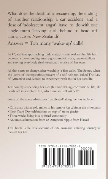 At 47, and fast approaching middle age, Lynette realises that life has become a never ending merry-go-round of work, responsibilities and serving everybody else's needs, at the price of her own. All that starts to change, after watching a film called The Secret, when she learns of the mysterious powers of a self-help tool called The Law of Attraction and decides to experiment with this in her own life. Temporarily suspending her safe (but unfulfilling) conventional life, she heads off in search of fun, adventure and a 'Lost Self'. Some of the many adventures 'manifested' along the way include: ¿ Christmas with a gold miner in his remote log cabin in the mountains ¿ New Year's Day celebrations on top of an ice glacier ¿ Three weeks living in a spiritual community ¿ An unusual invitation from an American hippie from Hawaii This book is the true account of one woman's amazing journey to reclaim her life.