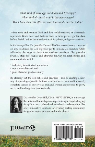 When men and women lead and live collaboratively, it accurately represents God's heart and harkens back to those perfect garden days before the fall, before the introduction of fear, death, and gender division. In Reclaiming Eden, Dr. Jennifer Dean-Hill offers revolutionary concepts on how to address the lack of gender parity in many US churches, while addressing the negative impact on modern marriages. She provides practical steps for couples and churches longing for relationships and communities in which: ¿ inclusivity is instinctual and natural ¿ equity is established, and ¿ good character produces unity By cleaning out the old beliefs and practices-and by creating a new way of operating-Jennifer believes we can achieve a new and improved, complete version of ourselves as men and women empowered to grow, serve, and lead together harmoniously.