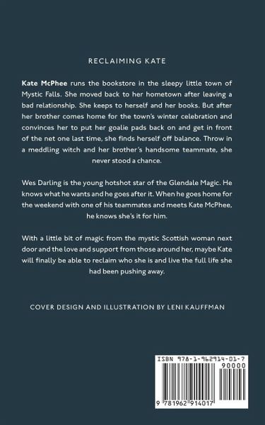 Kate McPhee runs the bookstore in the sleepy little town of Mystic Falls. She moved back to her hometown after leaving a bad relationship. She keeps to herself and her books. But after her brother comes home for the town's winter celebration and convinces her to put her goalie pads back on and get in front of the net one last time, she finds herself off balance. Throw in a meddling witch and her brother's handsome teammate, she never stood a chance. Wes Darling is the young hotshot star of the Glendale Magic. He knows what he wants and he goes after it. When he goes home for the weekend with one of his teammates and meets Kate McPhee, he knows she's it for him. With a little bit of magic from the mystic Scottish woman next door and the love and support from those around her, maybe Kate will finally be able to reclaim who she is and live the full life she had been pushing away.