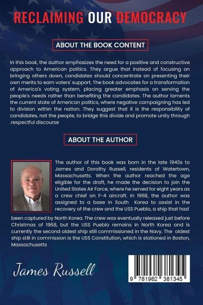 In this book, the author emphasizes the need for a positive and constructive approach to American politics. He has argued that instead of focusing on bringing others down, candidates should concentrate on presenting their own merits to voters' support. The book advocates for a transformation of America's voting system, placing greater emphasis on serving the people's needs rather than benefiting the candidates. The author laments the current state of American politics, where negative campaigning has led to division within the nation. He has suggested that it is the responsibility of candidates, not the people, to bridge this divide and promote unity through respectful discourse.