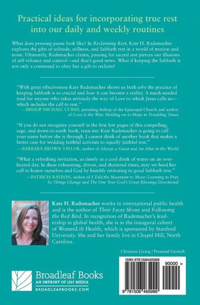 What does pressing pause look like? In Reclaiming Rest, Kate H. Rademacher explores the gifts pf solitude, stillness and Sabbath rest in a world of motion and noise. Ultimately, Rademacher claims, pausing for sacred rest pierces our illusions of self-reliance and control - and that's good news. What if keeping the Sabbath is not only a command to obey but a gift to reclaim?